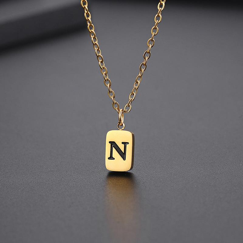 Diese elegante Buchstaben-Halskette besteht aus hochwertigem Messing, das mit 18K vergoldet wurde, und ist ein stilvolles, personalisiertes Accessoire. Der rechteckige Anhänger mit dem ausgewählten Buchstaben verleiht der Kette eine moderne und dennoch zeitlose Ausstrahlung. Ob als Geschenk oder für dich selbst – diese Halskette ist perfekt, um einen Hauch von Persönlichkeit zu deinem Look hinzuzufügen. Die robuste Messingbasis und die hochwertige Vergoldung sorgen für Langlebigkeit und einen luxuriösen Glanz, der sich für jeden Anlass eignet. Verfügbar in allen Buchstaben!